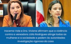 Em nota, a presidente da Assembleia Legislativa, Iracema Vale, expressou sua profunda indignação com os relatos de violência sofridos pela vereadora de tentativa de estupro, agressão física, assédio moral e violência política, classificando-os como graves. “Não podemos normalizar nem silenciarmos diante de tamanha violência. Nosso compromisso é cobrar das autoridades competentes a apuração urgente e rigorosa dos fatos, garantindo a responsabilização exemplar do acusado”, afirmou Iracema Vale na nota, solidarizando-se com a vereadora Júlia Rodrigues e reafirmando que “nenhuma mulher deve se calar diante de qualquer forma de violência”.