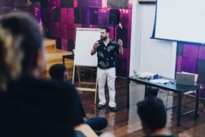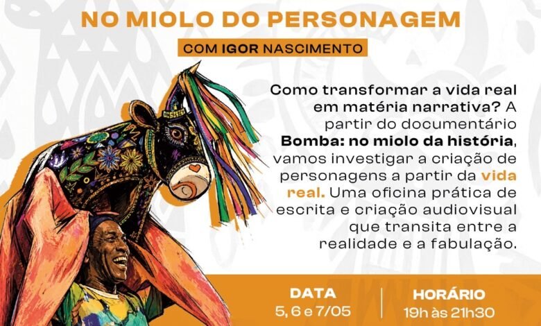 A oficina propõe uma imersão nos processos de criação de personagens a partir da vida real, inspirada no documentário da Versobaiô que acompanha a trajetória de Geovane “Bomba” Correia, brincante que há mais de quatro décadas atua como miolo de boi em diversos terreiros e sotaques do bumba meu boi maranhense. A partir de conceitos como persona, conflito, situação e ponto de vista, os participantes desenvolverão exercícios de escrita e criação audiovisual, explorando histórias, memórias e o imaginário popular.