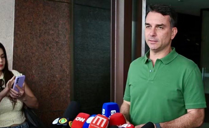 Filho mais velho do ex-presidente Jair Bolsonaro (PL), o senador participou de um culto evangélico em Brasília neste domingo. Na saída, ele indicou que a contrapartida para retirar a pré-candidatura ao Palácio do Planalto envolve a discussão de um projeto de anistia aos condenados pelo Supremo Tribunal Federal (STF) pela trama golpista, o que beneficiaria diretamente seu pai, que está preso.