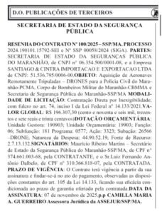 O Governo do Maranhão, por meio da Secretaria de Segurança Pública (SSP), investiu quase R$ 200 mil na compra de aeronaves não tripuladas (drones) para fortalecer as ações de combate à criminalidade no estado. Os equipamentos deverão ser usados em atividades de monitoramento e captação de imagens para auxiliar investigações e outras ações policiais. A informação está publicada no Diário Oficial do Estado no último dia 12.