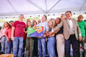 O secretário de Estado de Agricultura e Pecuária, Fábio Gentil, ao lado do governador Carlos Brandão e outras autoridades em entrega simbólica de cartão do programa Tempo de Semear